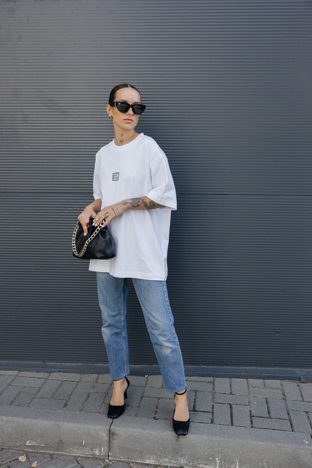 Išraiškingi marškinių pečiai ir griežta apykaklė sukuria monumentalią liniją, kuri nėra tik detalė, o viso įvaizdžio ašis 🫷