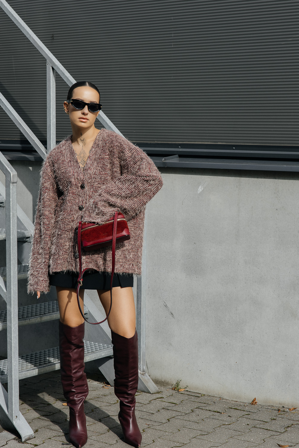 Architektūrinės rankovės suteikia drąsų, skulptūrišką siluetą, tačiau trumpesnis ilgis paverčia šį drabužį universaliu – lengvai derinamu tiek prie minimalistinių kelnių, tiek prie ryškesnių formų.