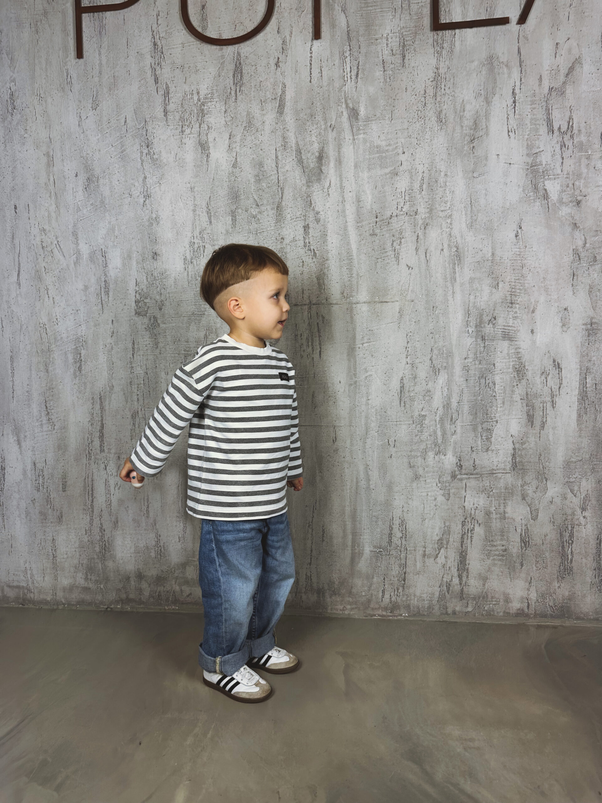 PÙPLA MINI CLASSIC STRIPES MELANGE – klasikinis dryžuotas džemperis mažiesiems, jungiantis žaismingumą ir PÙPLA minimalizmą.