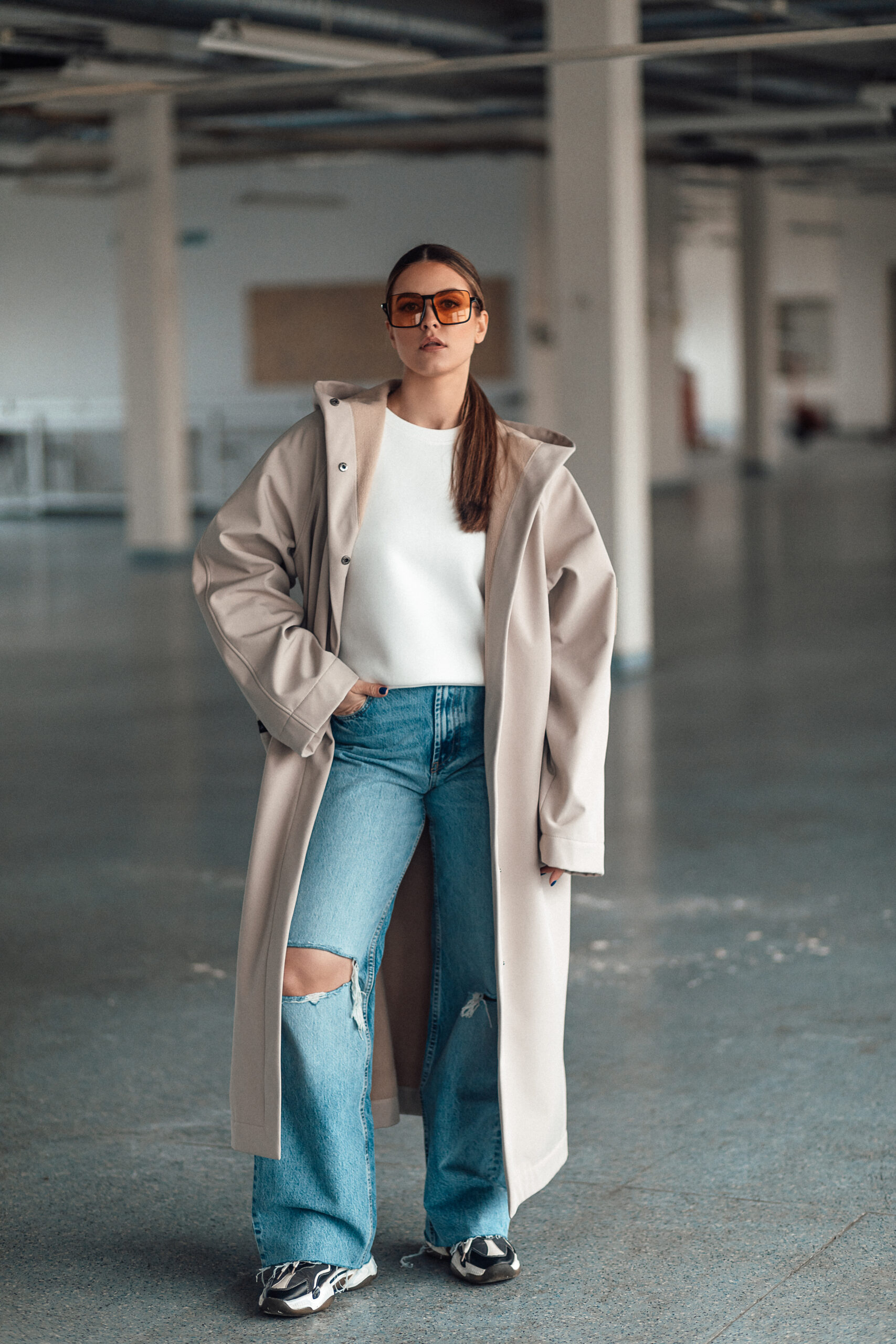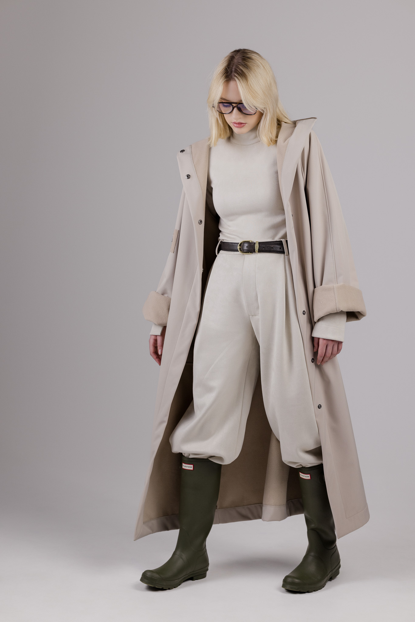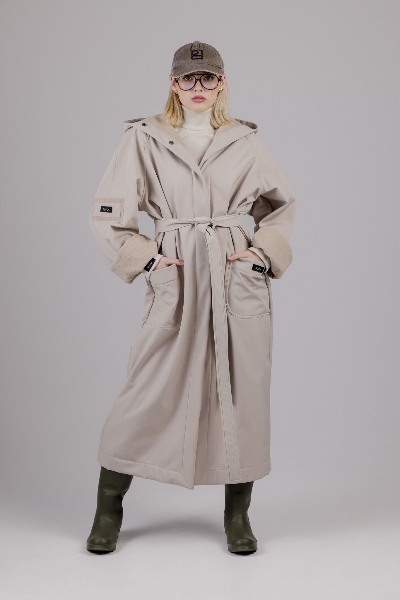 Ilgos rankovės, didelis kapišonas, šponkė aukščiausioje lietpalčio vietoje, kuri saugos kaklą nuo vėjo ir lietaus. Neperšlampanti, matinė medžiaga, vidinėje pusėje padengta flysu, kurio dėka lietpaltis nėra tarsi šaltas ir plastmasinis medžiagos gabalas.