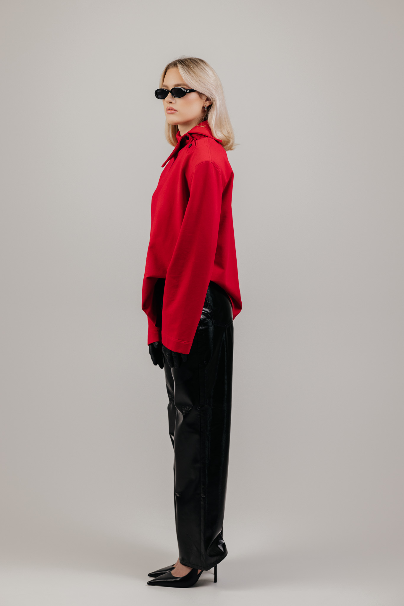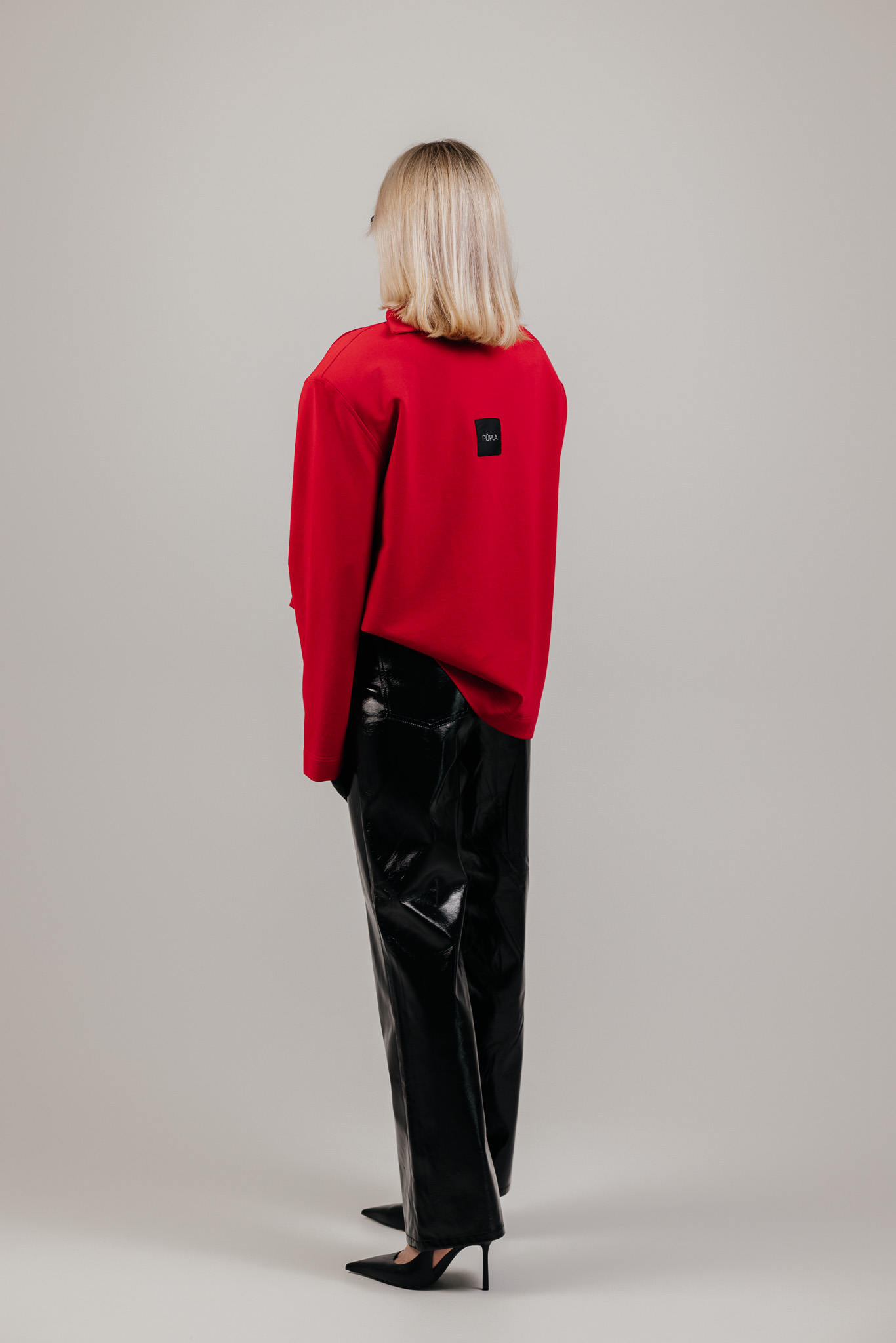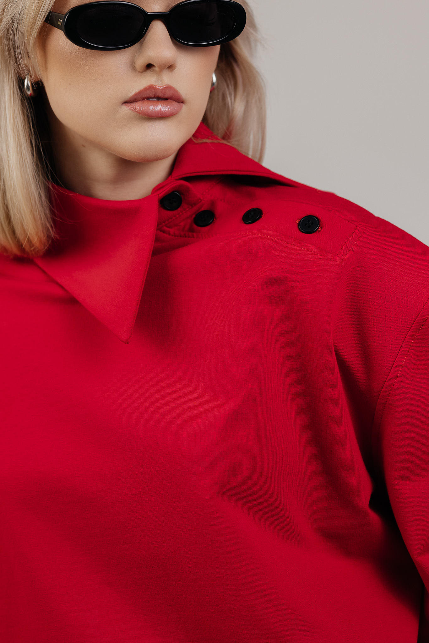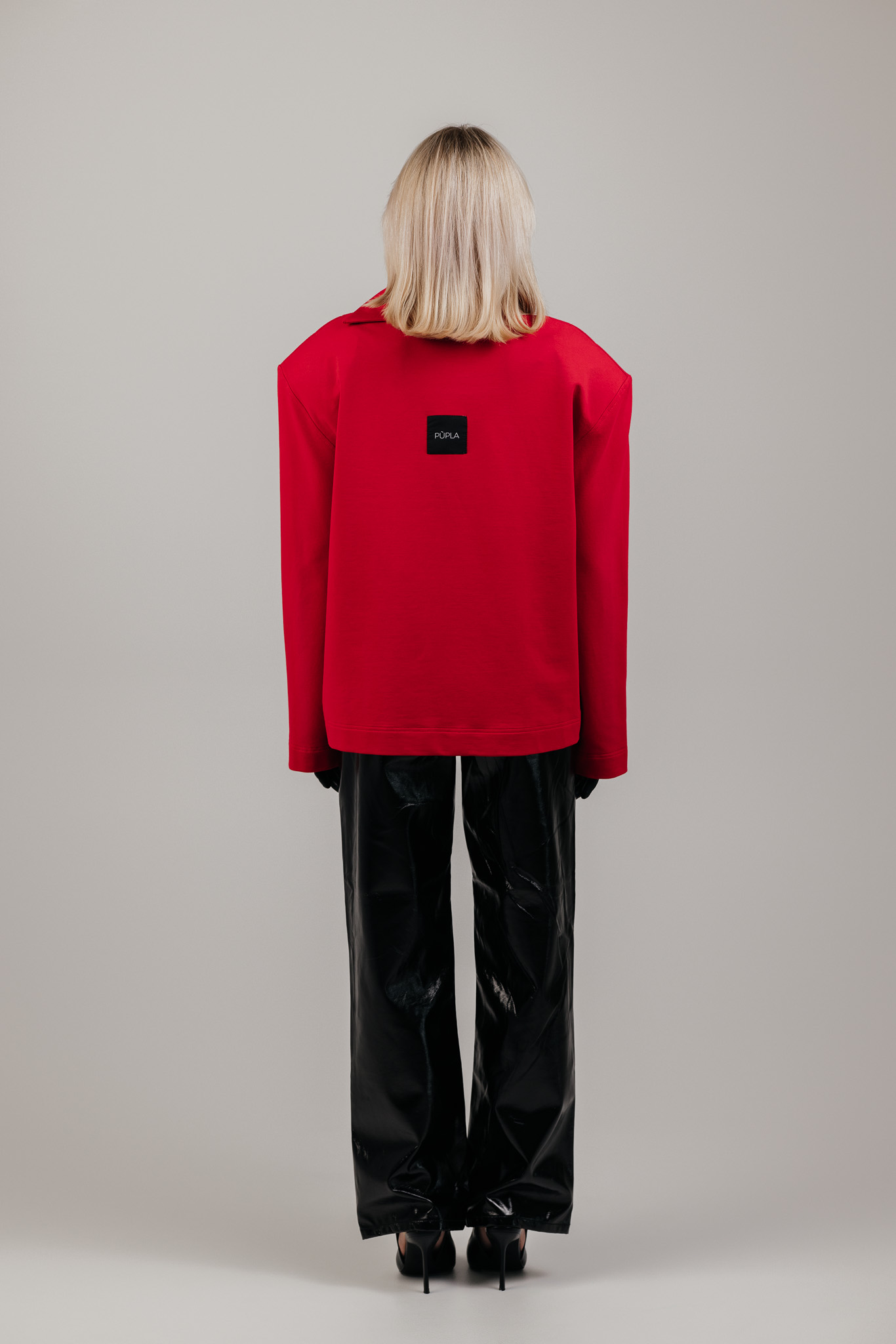 ATLAS džemperis sukurtas aplink aiškią formą – tvirtą pečių liniją, švarią silueto geometriją ir išskirtinę apykaklę, kuri tampa pagrindiniu šio drabužio akcentu. Ji subtiliai įrėmina veidą ir suteikia visam įvaizdžiui charakterio.