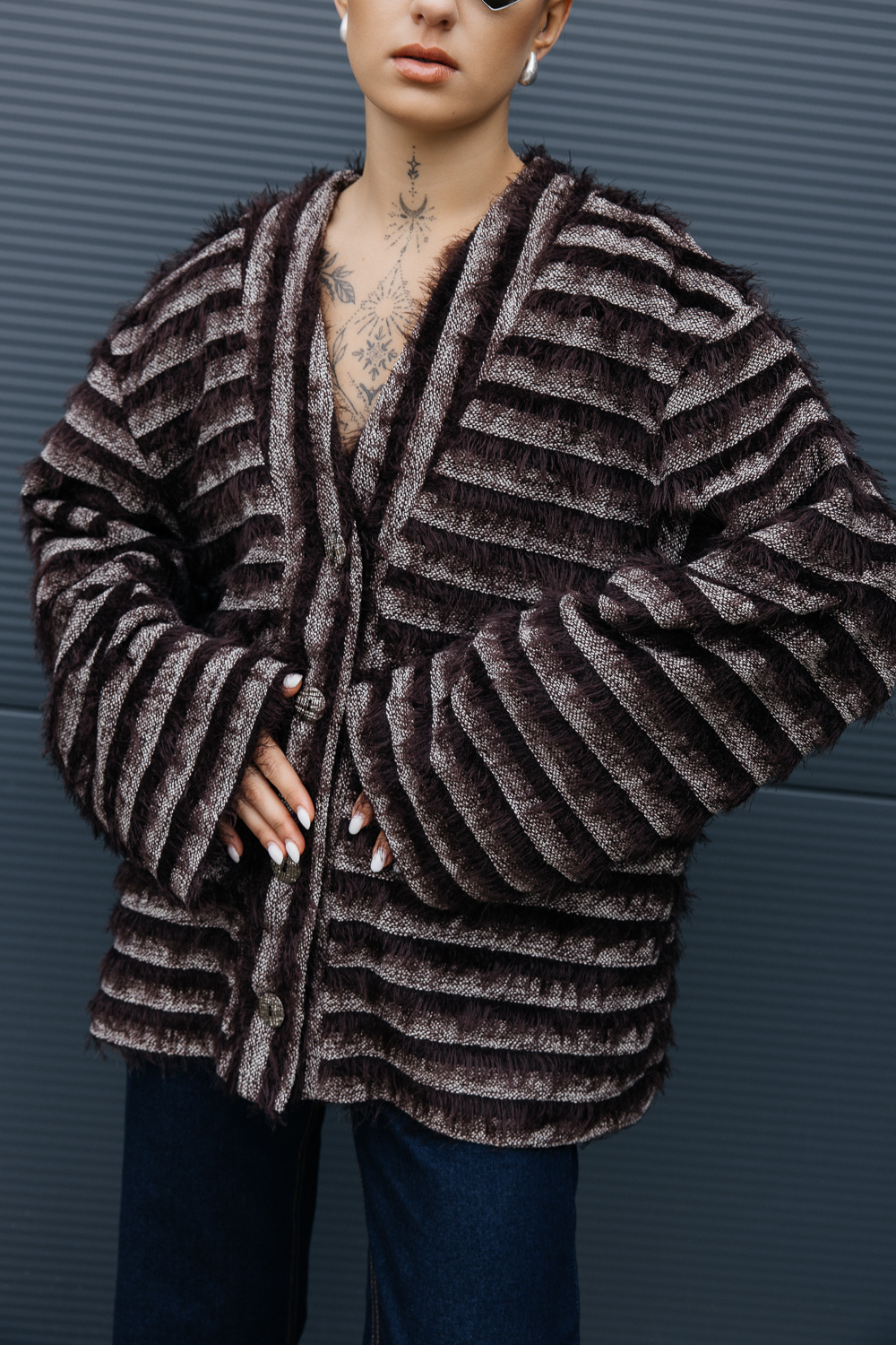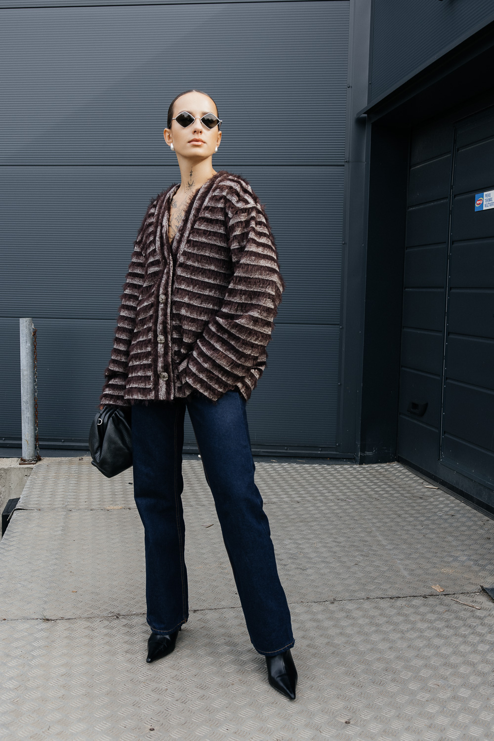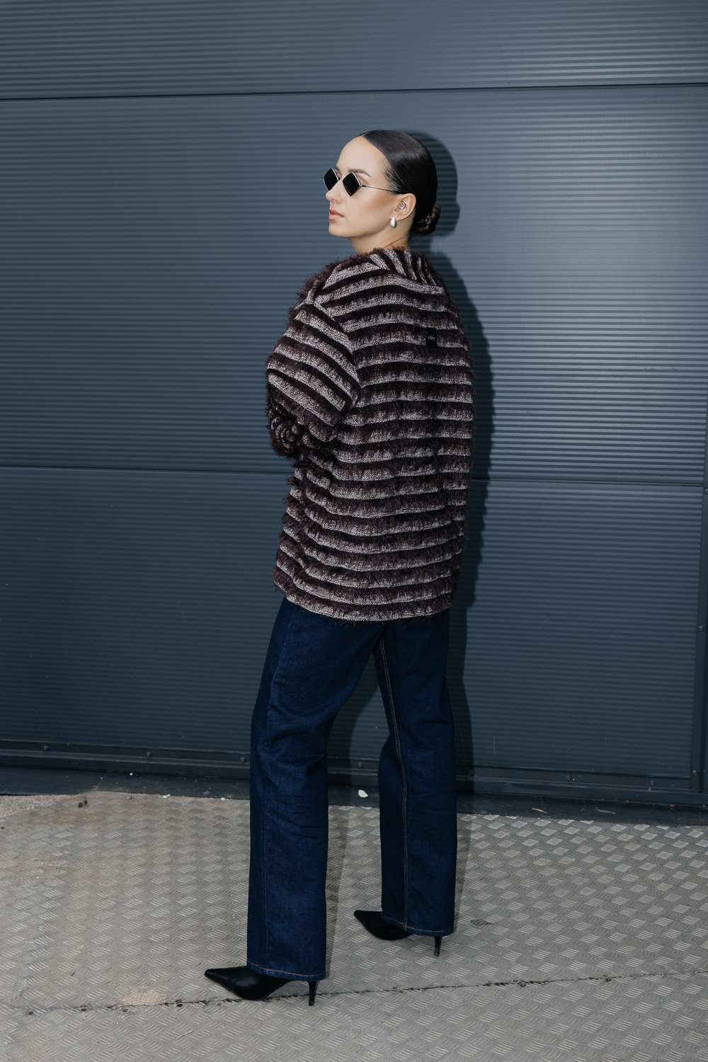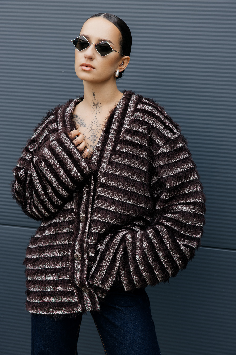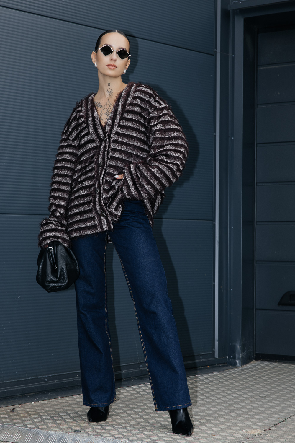 HUSH – megztinis, kuris kalba faktūra: pūkuota, giliai sluoksniuota medžiaga kuria architektūrinį ritmą, o laisva forma suteikia jam tylų, bet stiprų charakterį. Tai drabužis, kuris ne seka mados kryptį – jis ją sulėtina. Sukurtas akimirkoms, kai norisi jausti šilumą ir išlikti matomai be pastangos.