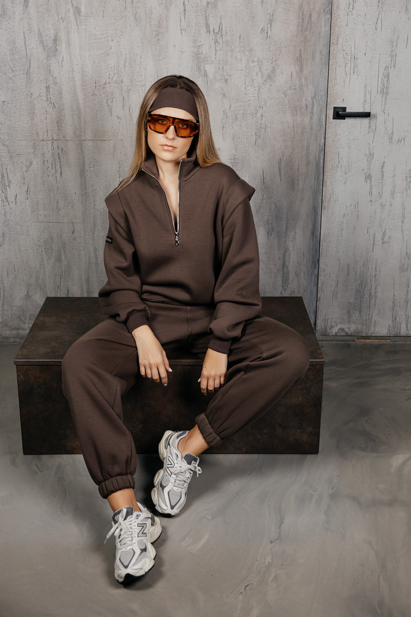 MASS klasikinės laisvalaikio kelnės išlaiko atpažįstamą PÙPLA formą -laisvas, bet apibrėžtas siluetas su aiškiomis linijomis ir švariu kritimu. Apačioje prisiūta guma natūraliai suformuoja proporcijas, išlaikydama struktūrą ir leidžianti siluetui „kvėpuoti“. Šoninės kišenės įsiūtos subtiliai, o didelė austinė PÙPLA etiketė sėdmens zonoje tampa santūriu akcentu. Medžiaga su pūkeliu viduje apgaubia šiluma, suteikdamas minkštumo kontrastą stiprioms formoms.