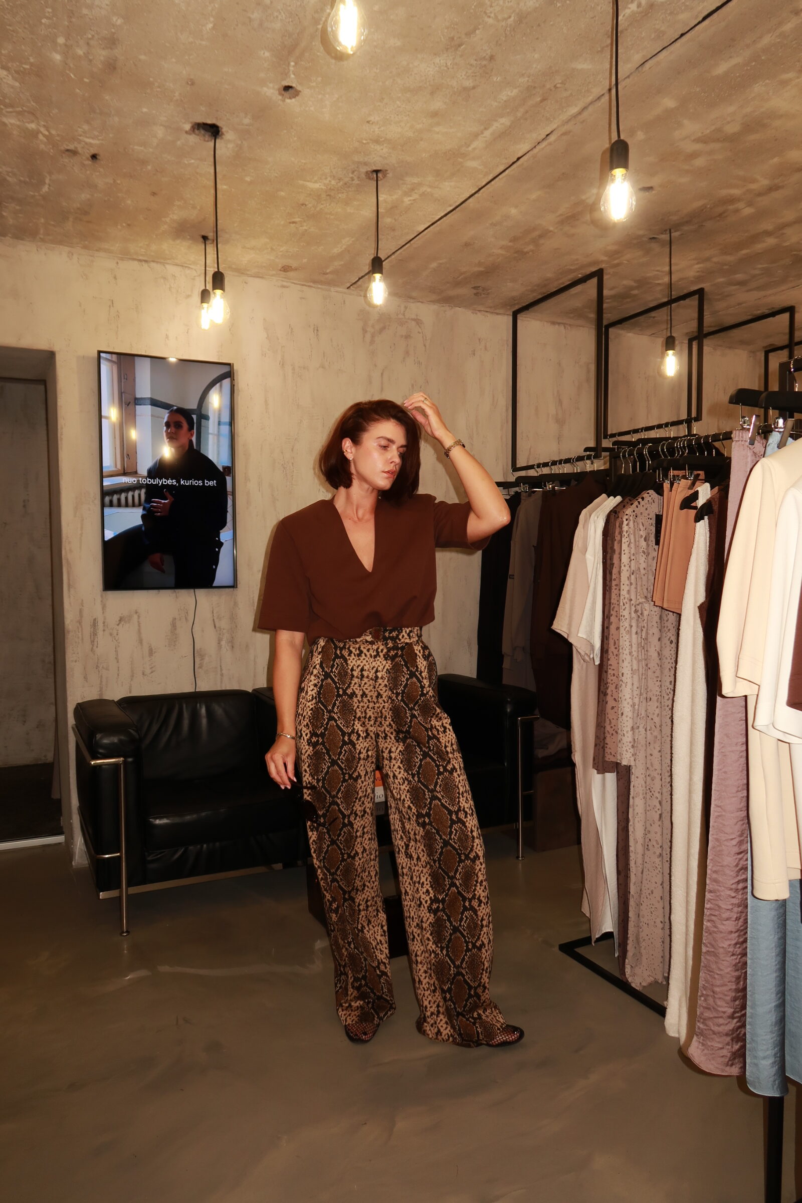 Palaidinė su paryškinta pečių sritimi dėl viduje įsiūtų petukų, kurie suteikia griežtumo, formos ir modernumo. Na, o V formos iškirptė šiai palaidinei dovanoja didžiausią grožį – moteriškumą, seksualumą ir išskirtinumą.
